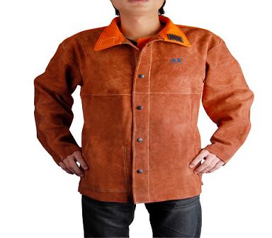 产品名称:咖啡色皮配橙色阻燃背布焊服 产品型号:AP-3080 产品类别:清凉款夹克 咖啡色皮配橙色阻燃背布焊服的前幅选用耐磨隔热的牛二层皮,后幅配以水洗防火阻燃布料; 采用杜邦Kevlar防火线缝制;增强耐用度; 前幅配置防焊飞溅保护条,防止烧焊飞溅物溅入衣内; 耐热绝缘纽扣组合,方便穿卸,袖口配备可调纽扣,内置暗袋设计; 可翻式直立衣领,有效保护颈部; 防火阻燃棉布衣领,安全舒适又吸汗; 咖啡色皮配橙色阻燃背布焊服专为焊工在炎热坏境下工作而设计。 尺寸:M,L,XL,XXL,XXXL